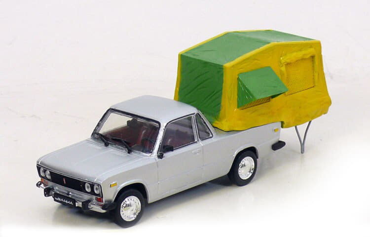 В свое время ВАЗ-2106 был самым продаваем автомобилем АвтоВАЗа. Даже сейчас машина частенько встречается на дорогах, а с приобретением «шестерки» на вторичном рынке не возникает ни каких проблем. Поэтому работники завода решили из него сделать пикап. Таким образом в 70-х годах был разработан пикап ВАЗ-2106 «Турист», который должен был предназначаться для людей, любящих путешествия по стране и отдых на природе. За основу был взят всеми известный и в то время популярный ВАЗ-2106, у которого немного переделали заднюю часть. Мало того, что особенность этой модели было в кузове пикап, так еще в задней части находилась туристическая палатка, которую можно было развернуть. Собственно, поэтому автомобиль и получил название «Турист». В грузовой платформе находилась заводская палатка, которая разбиралась и собиралась. Она имела подставки и открывающиеся окна. Внешность «Туриста» была очень симпатичной. Оригинальности автомобилю предавал в то время редкий цвет «металлик». В Советское время такой цвет был большая редкость. Для изготовления пикапа использовались уже имеющиеся детали и узлы. Из-за чего своеобразно смотрелось заднее лобовое стекло. Пикап был двухдверный, а в салоне могли разместиться только два человека включая водителя автомобиля. Салон полностью идентичен ВАЗ-2106, тот же руль, рычаг передач, те же сиденья и та же печка салона.