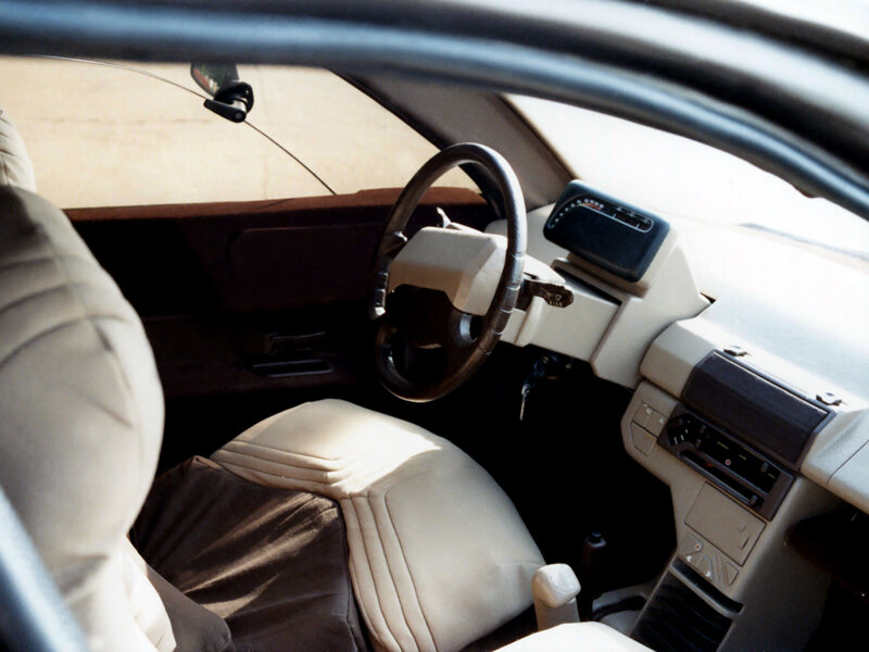 Интерьер встречает двухспицевым рулём, за которым расположилась цифровая панель приборов с высоким постаментом. При этом парприз выполнен низким и удобным, так, чтобы на него можно было положить различные мелкие вещи. Посредине видна консоль с многочисленными клавишами управления. Есть и магнитола, и блок «климата». Предполагалось, что в машине есть кондиционер. Пепельницы тоже были. В качестве цвета был выбран светлый оттенок, что дополнительно подчёркивало объём и пространство салона. А теперь к железу автомобиля.