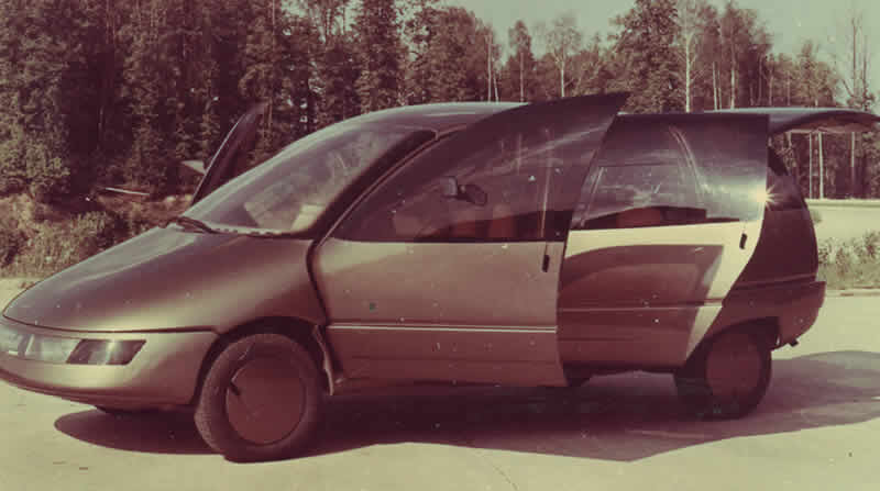 Одним из них стал 7-местный минивэн «Охта», отличавшийся обтекаемым кузовом с коэффициентом сопротивления 0.27, что было правдоподобным показателем, скорее, для спорткаров. Тем не менее, это было правдой. А ещё авто обладал салоном-трансформером. Да ещё каким! Передние кресла могли поворачиваться на 180 градусов и складываться. Задние сиденья также могли двигаться в широких пределах и ещё образовывать стол. При этом длина минивэна была всего 4.3 м. Но сложив два ряда, в нём легко можно было устроиться на сон.