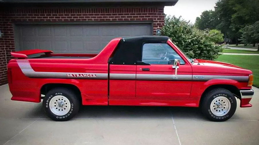 · Ford SkyRanger можно считать ещё одним необычным кабриолетом, сделанным из трака, а точнее, из пикапа. Под капотом у этого красного красавца разместился бензиновый 4-литровый мотор, а трансмиссия полноприводная. Стоит обратить внимание на нестандартный для этого класса автомобилей аэродинамический обвес. Также машина украшена фирменными декалями. Кузов авто таит в себе специальную дугу безопасности, которая также окрашена в общий цвет.
